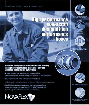Todas las mangueras Novaflex están fabricadas según especificaciones de servicio marino de conformidad con las regulaciones de la Guardia Costera de EE.UU., ISO, SAE, ABYC, NMMA e IMCI . Los productos incluyen: sistemas de conductos/ventilación, escapes, combustibles, servicios sanitarios/agua de sentina/piscifactorías/drenajes.