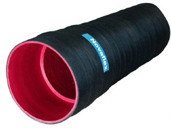 Rubber two-ply light duty material handling hose/rubberized ducting, wire reinforced. Constructed without glue, eliminating any potential de-lamination. A low pressure hose, designed to be extremely  lightweight, but offer high  flexibility and abrasion  resistance in vacuum and  discharge applications.